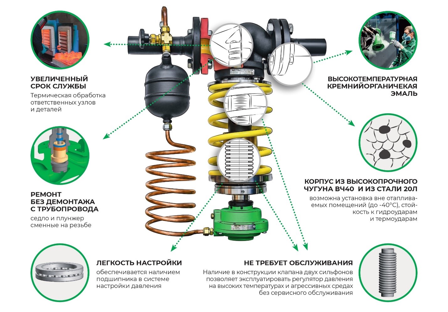 Первым на рынок поступит регулятор Д223 с корпусом из высокопрочного чугуна на температуры до +350°С. Весной 2025 года выйдет регулятор Д233 с корпусом из углеродистой стали 20Л на температуры до +425°С.